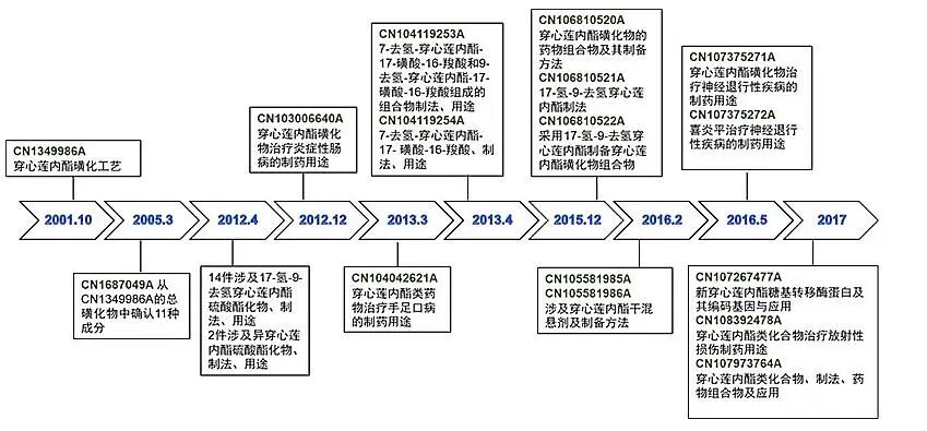 对于中药注射剂,报告给出了喜炎平、血必净、热毒宁、痰热清、醒脑静、参附、生脉和参麦注射液的专利技术路径和研发思路,其中,显示喜炎平具有多方面抗病毒活性,并能抗SARS冠状病毒,建议进一步深入研发。