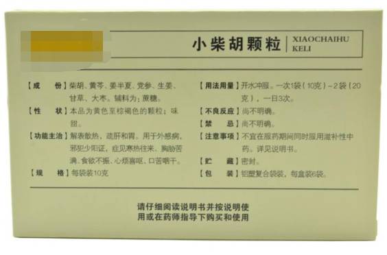 柴胡、黄芩、姜半夏、党参、生姜、甘草、大枣。辅料为蔗糖。颗粒剂比较大的改动是将原方中的人参换成了党参。