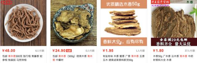 在淘宝中,依旧可以轻易买到关木通、广防已、青木香等药材...