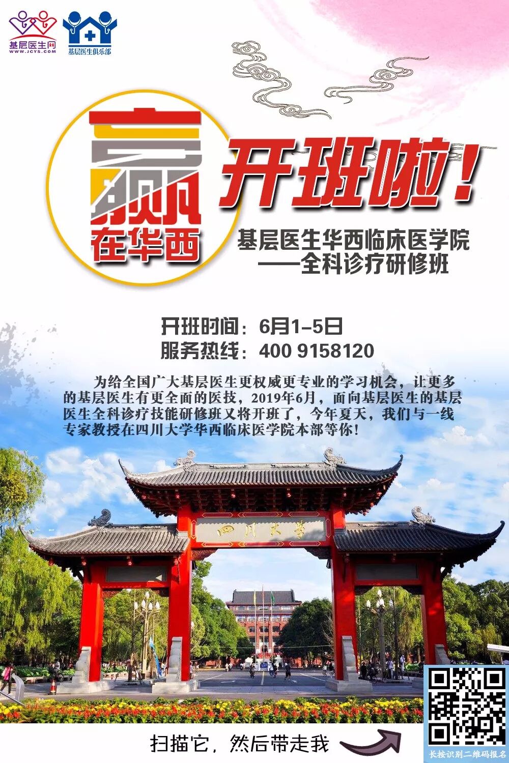 四川大学华西医学院基层医生全科诊疗技能研修班2019年6月开班,欲了解研修班详情,请点击左下方的阅读原文,报名可拨4009158120报名热线