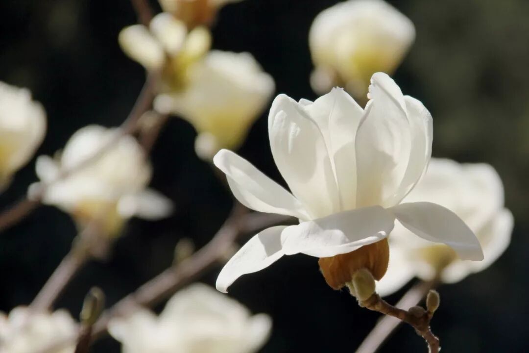 玉兰花盛开之后,仔细看还能发现辛夷留下的痕迹