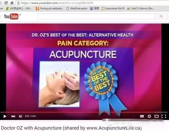 美国的超级著名健康节目Doctor Oz(奥茨医生秀),主持人为一个毕业于世界顶级医学院的美国心外科医生,在自己主持的中体验针灸并拼命宣传普及中医针灸 best of best。