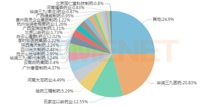 从感冒中成药TOP20厂家市场格局来看,华润三九医药的领军地位依然难以撼动,石家庄以岭药业虽位居第二,但市场份额明显上升,哈药三精制药、河南太龙药业、广州香雪制药排名较2019年也有望提升,2020年将一起进入TOP5内。