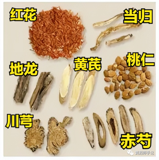 组成:黄芪、川芎、当归、赤芍、地龙、桃仁、红花