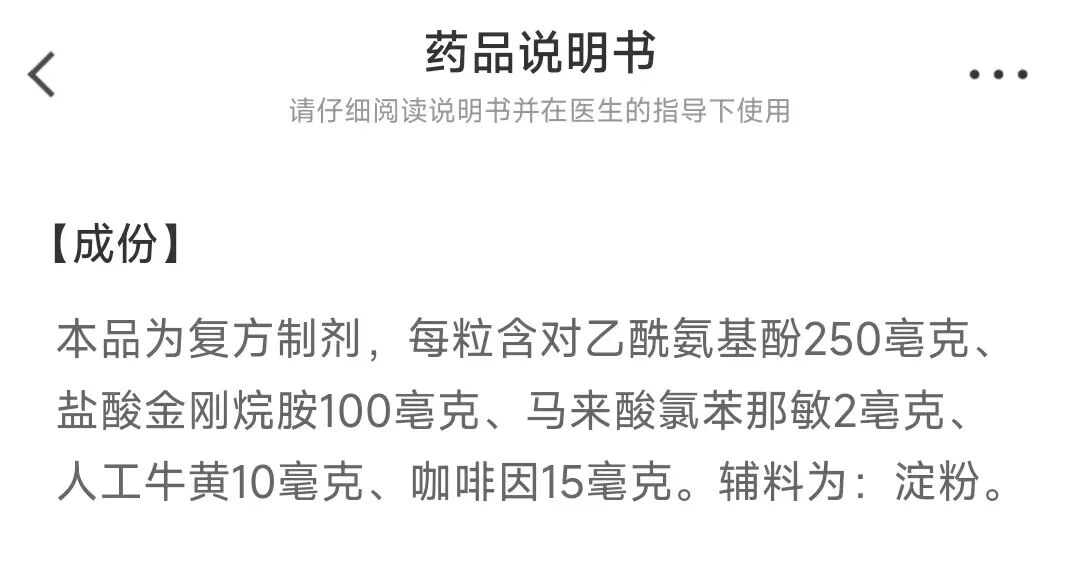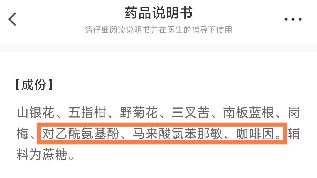 不过有的复方感冒药在名字上隐藏得很深,无法用上面的招数察觉,那我们就只能看成分。