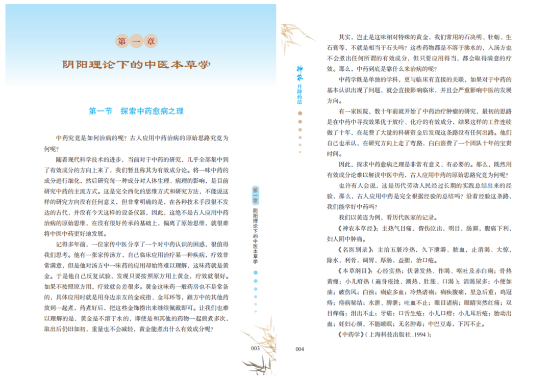 《神农升降药法》,回归中医的原点,以阴阳理论为指导,总结中药的功效由气、味、质、部、特五个元素所决定,提出一味中药其实仅有一个功效,中药纷繁复杂的治症仅仅是这一个功效通过升降治法发挥的治疗作用,因此,领会了中药的这一个功效,就可以把握中药治病的本质,从而达到灵活而准确应用的目标。书中对经方中常用的50味中药进行了详细解读,阐释了《神农本草经》中的相关记载,并且从药物组成的角度,结合升降治法,对相关的经方进行了解析。