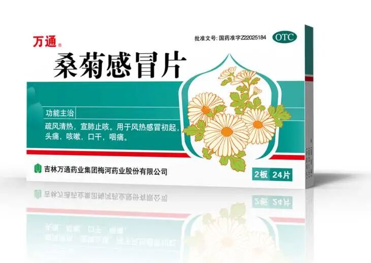 主要含有桑叶,菊花,连翘,薄荷脑素油,苦杏仁,桔梗,甘草,芦根。方中桑叶、菊花辛凉清透,疏风清热,解肌透邪为君;薄荷辛散风热,杏仁、桔梗宣降肺气,化痰止咳为臣;连翘清心泄热,芦根清热生津止渴为佐;生甘草清热解毒,甘缓和中,合桔梗以清利咽喉为使。诸药并用,具有疏风散热,宣肺止咳的功效。主要用于风热感冒初起,头痛,咳嗽,口干,咽痛。
