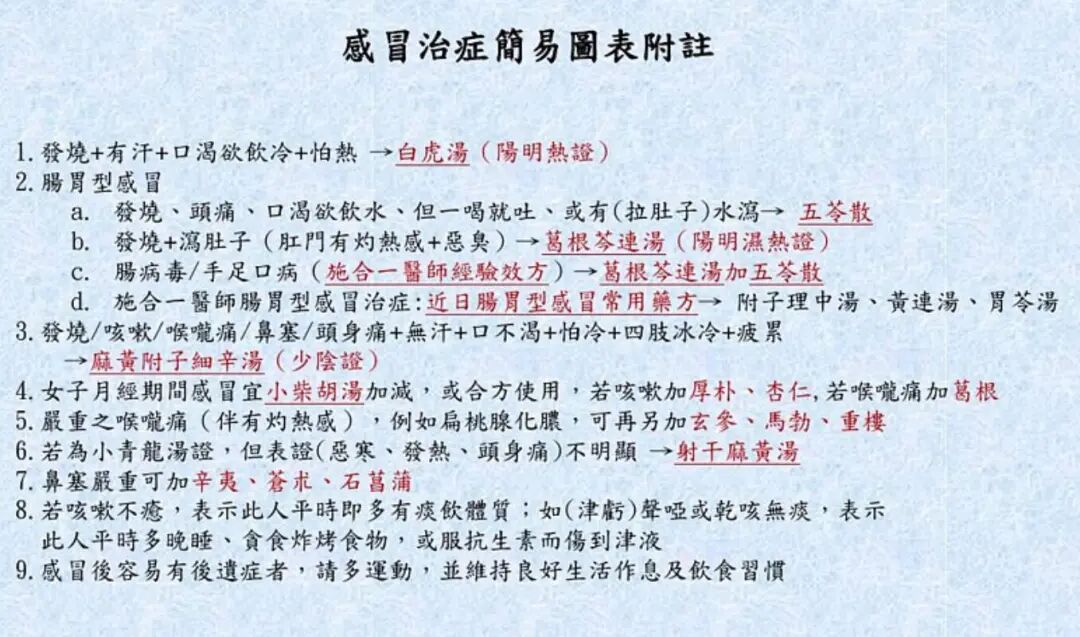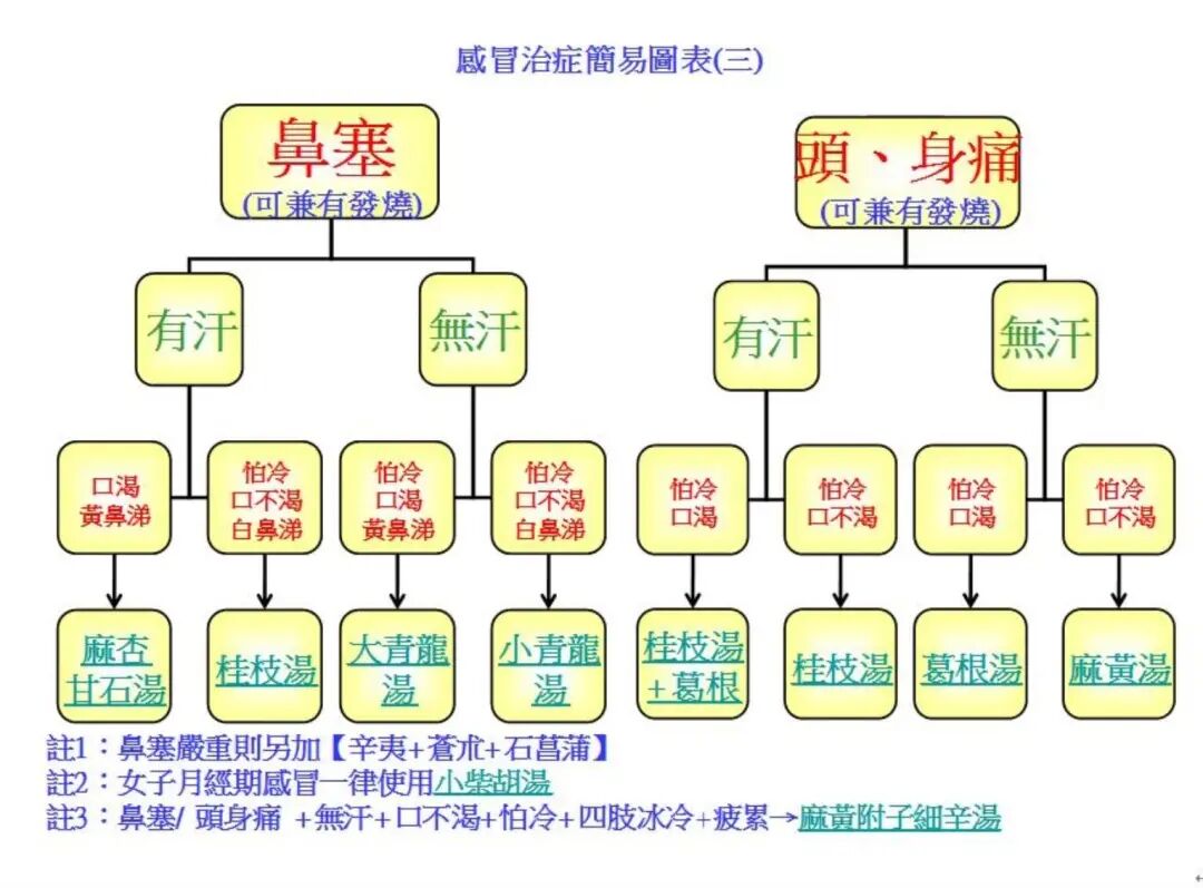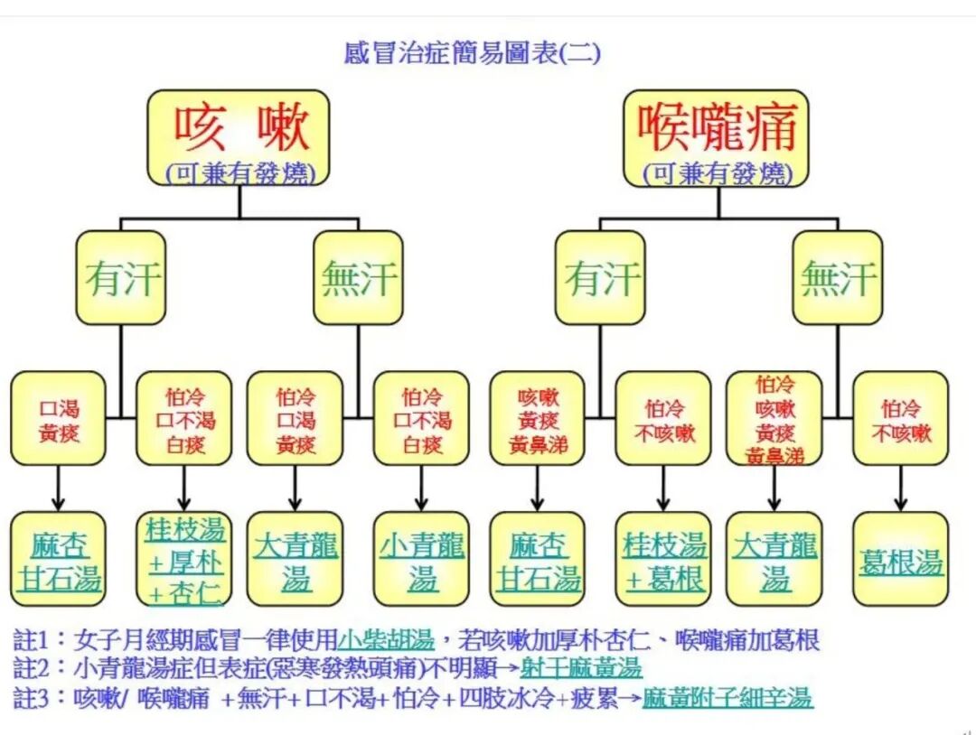 如果你是受凉引起感冒发烧的症状,不管是不是新冠,可以参考以上图表来使用经方。