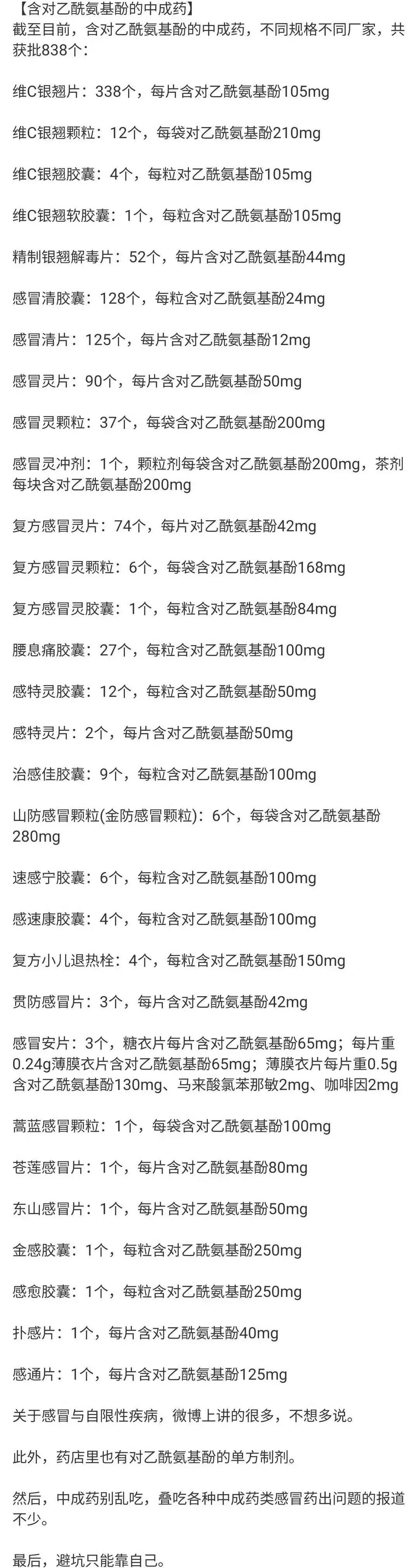 假如你选择中药或中成药的话,里面就只添加了乙酰胺酚,也就是泰诺中的有效成分。而且你无法把握用量。