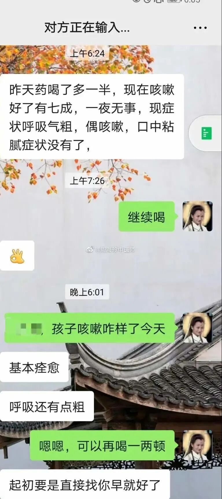 第二天一大早6点半,朋友发来反馈:咳嗽好转七成,昨晚一夜未咳。晚上6点再问:基本痊愈。