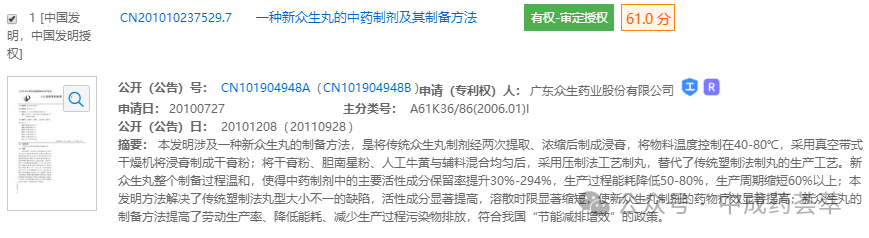 另外,与众生丸具有相似功效和用途的竞争中成药也较多: