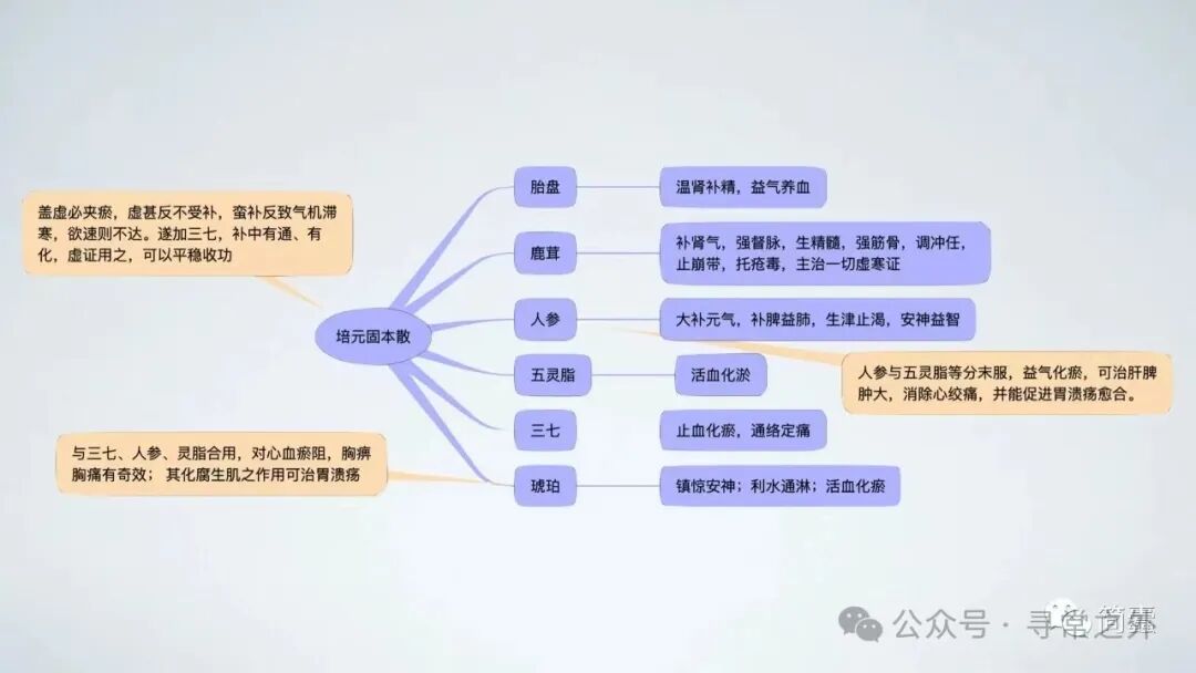 培元固本散由人胎盘、鹿茸片、红参、灵脂、三七、琥珀组成基础方。