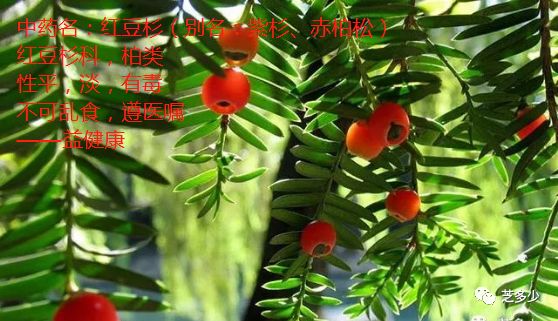 红豆衫又称紫杉,属国家一级保护的珍稀常绿乔木,枝、叶、皮、根可提取昂贵抗癌药物--紫杉醇。从红豆杉的树皮和树叶中提炼出来的紫杉醇对多种晚期癌症疗效突出,被称为"治疗癌症的最后一道防线"。