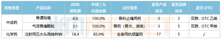 华润三九部分产品在中国城市实体药店终端的销售情况(单位:亿元)