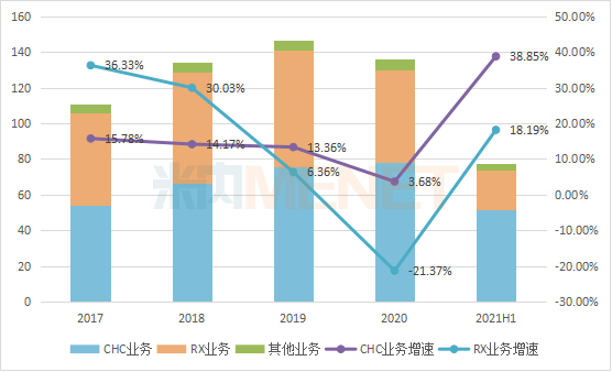 从细分业务看,CHC业务覆盖了感冒、皮肤、胃肠、骨科、儿科、肝胆等近10个品类,近年来营收不断见涨,从2017年的54.29亿元增长至2020年的78.34亿元,目前已成为华润三九的主要收入来源。
