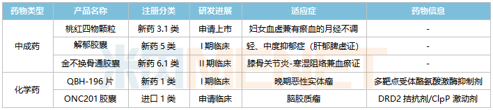 QBH-196是一款多靶点受体酪氨酸激酶抑制剂,晚期恶性实体瘤适应症已步入I期临床;引进的ONC201属于DRD2拮抗剂/ClpP激动剂,全球范围最高研发进展处于II期临床,在国内的临床申请已获得CDE承办受理。