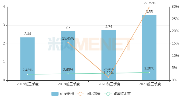 华润三九年报数据显示,2021年前三季度公司研发费用3.55亿元,比去年同期增长近30%,占营业收入比重超过3%。近年来,华润三九持续加大研发投入,丰富产品管线。截至2020年年末,公司在研项目57项,集中在肿瘤、骨科、皮肤、呼吸等治疗领域。