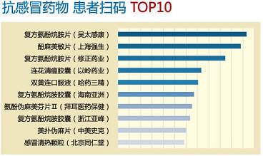 在扫码量较大的感冒类药物中,西药复方制剂占7席,中成药占3席,且排名前三位均为西药复方制剂,反映出消费者在感冒药选择时更偏向于控制感冒症状的西药复方制剂。