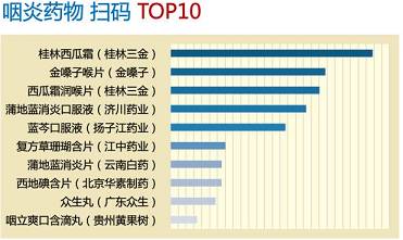 统计排名基于智慧药箱用户主动扫码,图中横轴代表用户扫码的数量。结果未必反映真实的销售数据,仅供大家参考。