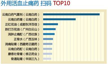 在外用镇痛药方面云南白药遥遥领先,这反映出云南白药品牌在此类产品中的绝对优势地位,成为消费者首选的产品。