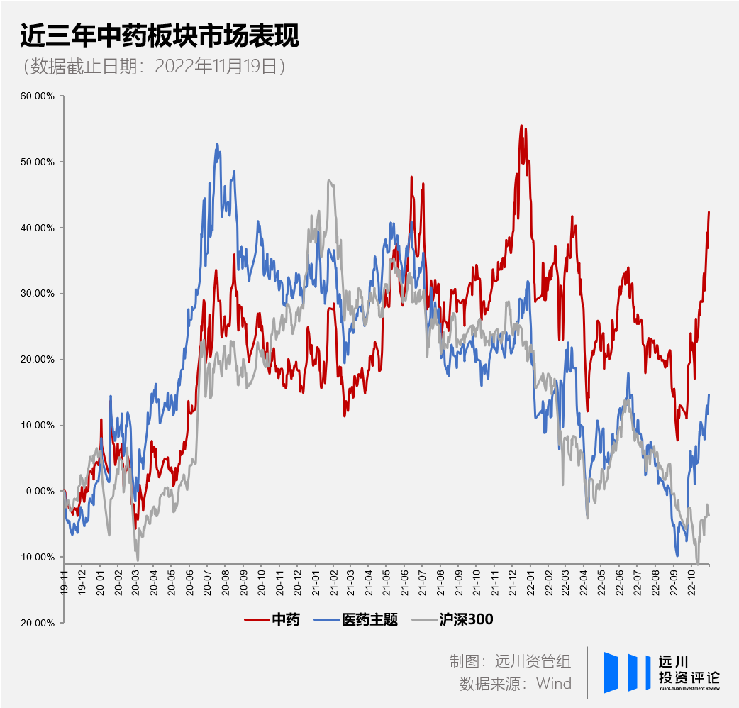 后续政策密集出台:中医医疗机构可暂不实行按疾病诊断相关分组付费;中医院和中药零售药店纳入医保顶点;中药饮片加成仍保持了长期以来不变的比例(25%)[1]。正如财通医药鑫选基金经理张胤所评论的,2022年医保端、审评端等对现代中药有着明显的倾斜[3]。