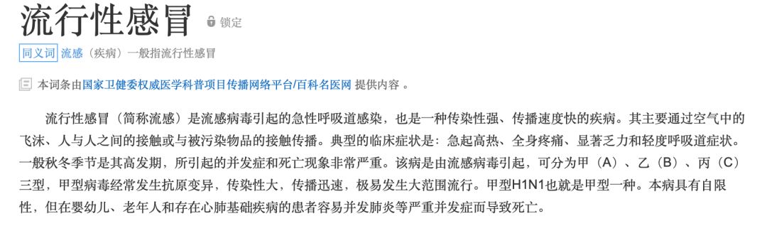 感冒分两种,一种是普通感冒,一种是流行性感冒。先来看看百度百科对两种感冒的定义。