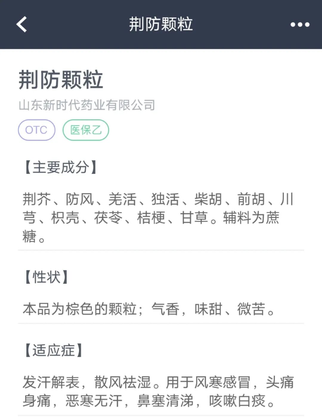 家里刚好有荆防颗粒,因为懒就没去买正天丸,就先吃了荆防颗粒,那天中午吃了睡了一觉没出汗,下午傍晚还是身上冷,然后就用苏叶煮水喝了一大杯,身体稍微暖和一点点,晚上睡觉出汗了,第二天头好一点了,但是还有点怕冷腿酸继续服用荆防颗粒,一天三顿,夜里出了很多汗,第三天(昨天)就完全好了。