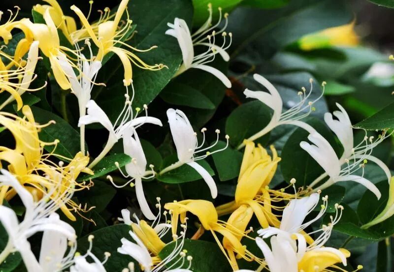 忍冬别称金银花,三四月开花,长寸许,一蒂两花,二瓣,一大一小,初开时蕊瓣俱色白,二三日则色变黄。