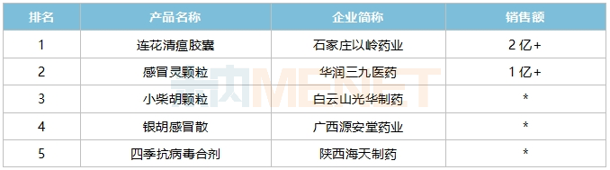 2023年中国网上药店终端感冒中成药TOP5品牌注:低于1亿元用*代表来源:米内网中国网上药店药品终端竞争格局