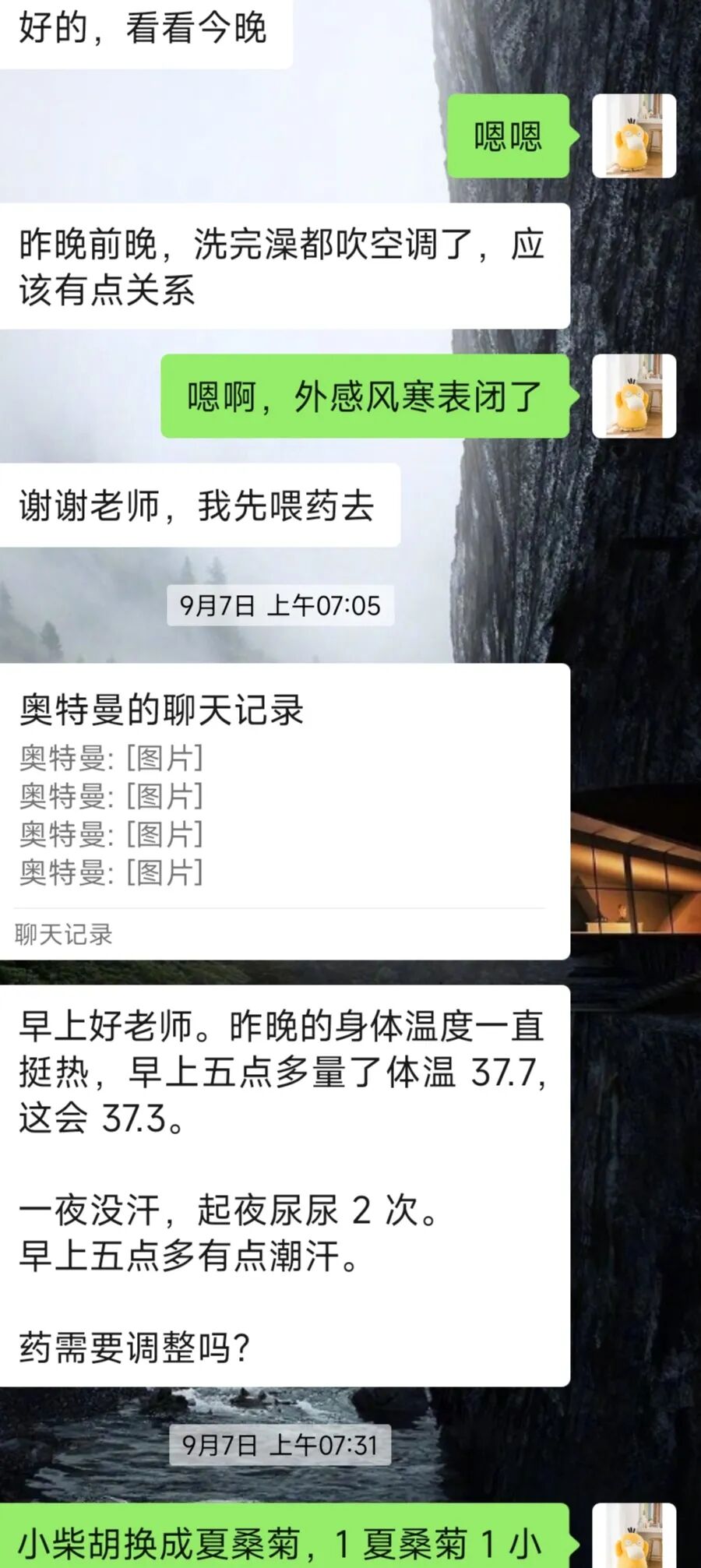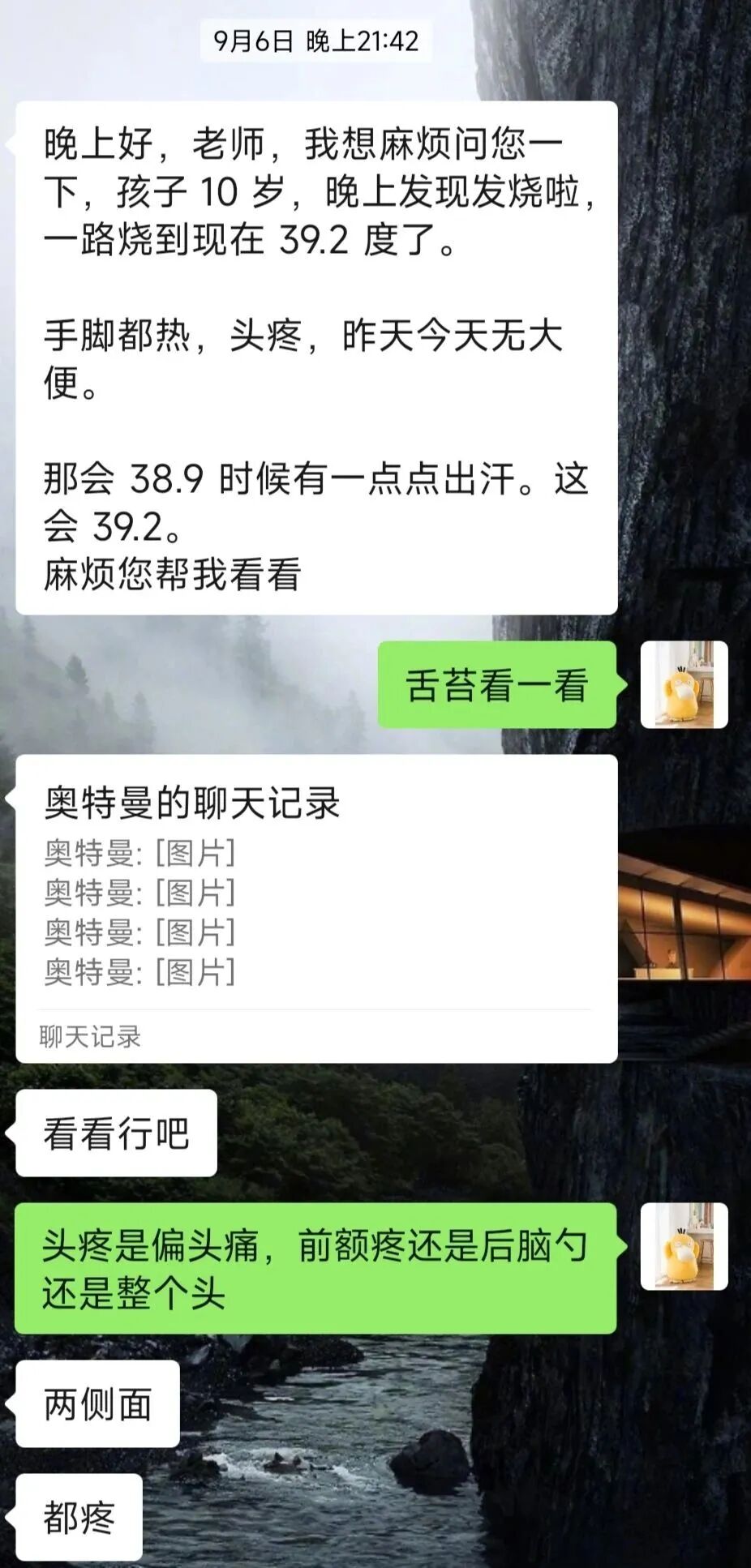 某天晚上,学员发来求助,孩子突然发烧到39.2℃,两侧头疼,手脚发热,微微出过一点汗。