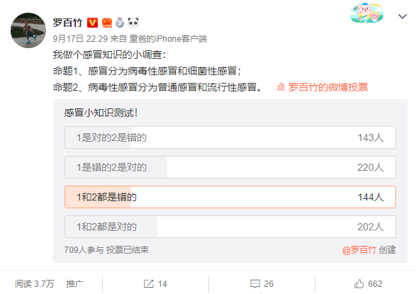 感冒看起来似乎是最简单的问题,但是细究之下,却并不简单。我曾经在我的微博上做过一个关于感冒的小调查,我设定了两个命题: