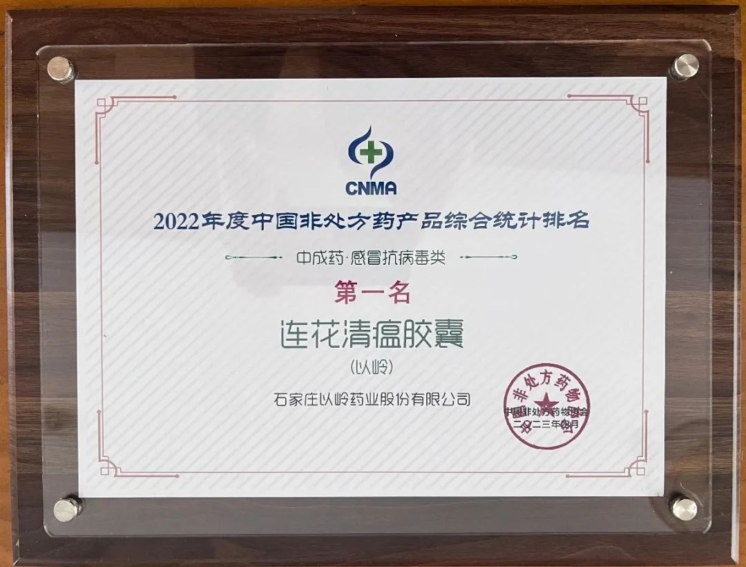 今年4月,中国非处方药物协会发布2022年度非处方药企业及产品统计调研结果。其中,连花清瘟胶囊在中成药感冒抗病毒类产品中排名第一,并获评中国非处方药黄金大单品,彰显出其零售渠道影响力。