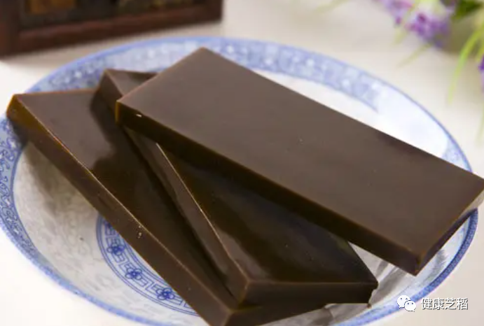 阿胶是采用黑驴皮经过漂泡去毛后,加冰糖等配料熬制而成。本品味甘、性平,有补血止血、滋阴润肺、调经安胎等作用,是自古以来人们最为喜欢的滋补珍品。《水经注》即有岁常煮胶,以贡天府的记载,故有贡胶之称。《本草纲目》更是将阿胶当做是圣药,它与人参、鹿茸并称为中药的三宝