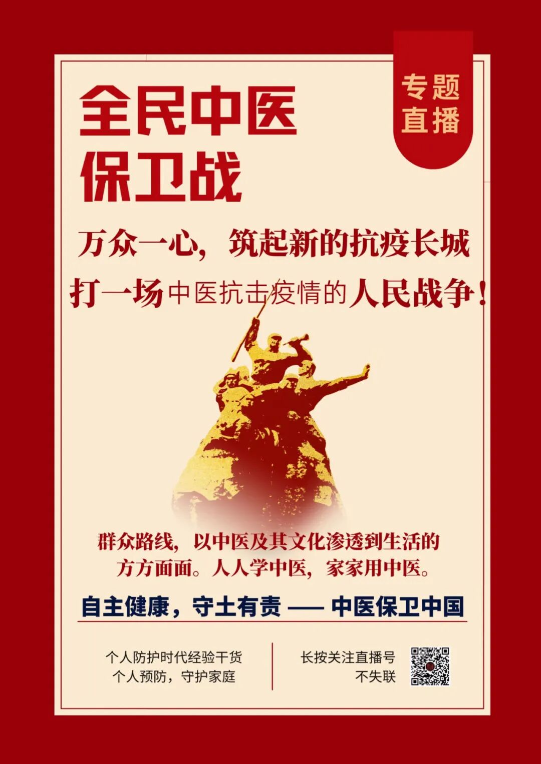 每周末五六日八点,中医防疫专题直播继续,见下图,长按关注直播间——