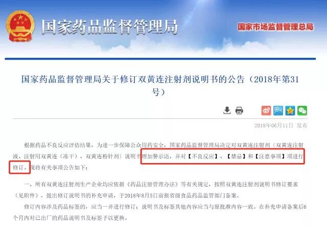 从2005年至今,已有双黄连注射剂、柴胡注射液、茵栀黄注射液、丹参注射液、鱼腥草注射液、红花注射液、冠心宁注射液、鱼金注射液、复方蒲公英注射液、莲必治注射液及穿琥宁注射液等数种常见中药注射剂被责令修改说明书,注明儿童或孕妇禁用或者慎用。