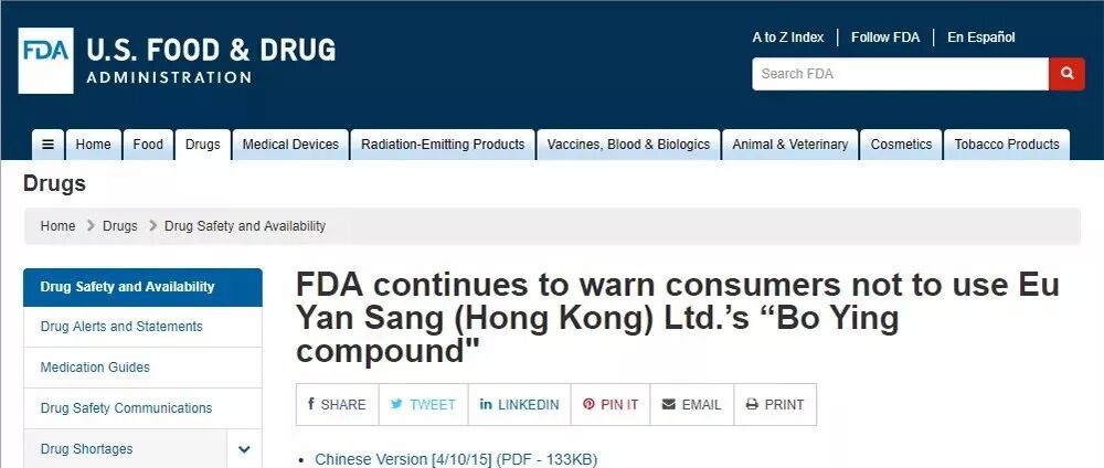 而2014年,美国食药监局也曾警告消费者停止使用使用香港余仁生牌保婴丹,以防重金属中毒。