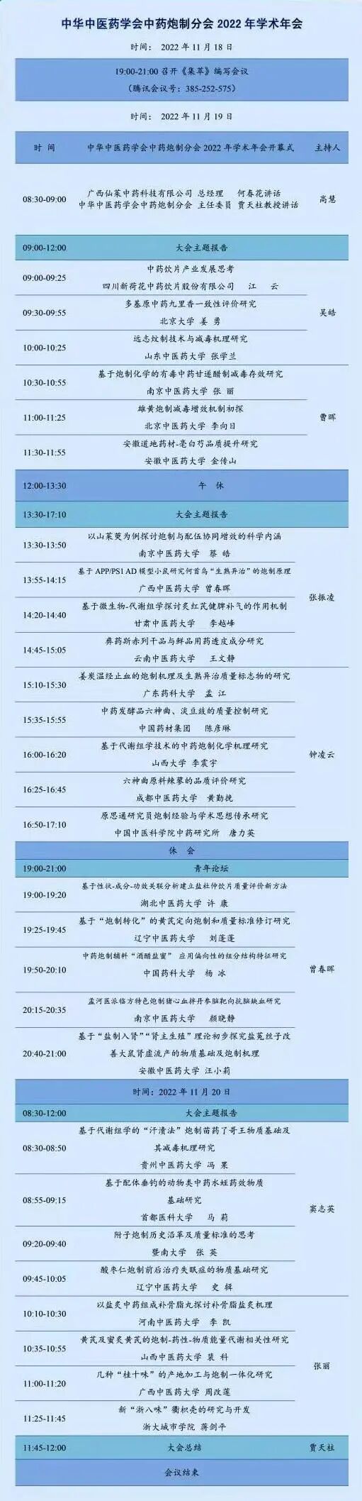 由中华中医药学会主办,中华中医药学会中药炮制分会、辽宁中医药大学、广西仙茱中药科技有限公司共同承办,广西中医药大学协办的中华中医药学会中药炮制分会2022年学术年会原定于2022年11月18日-20日在广西南宁举办,因疫情原因,现将会议改成线上会议。相关内容通知如下: