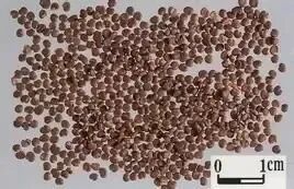 形似扁肾沙苑子,一边凹入具种脐;