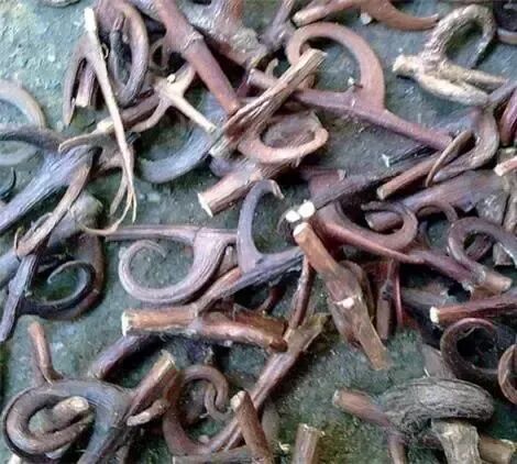 勾藤似船锚,质轻色紫红,