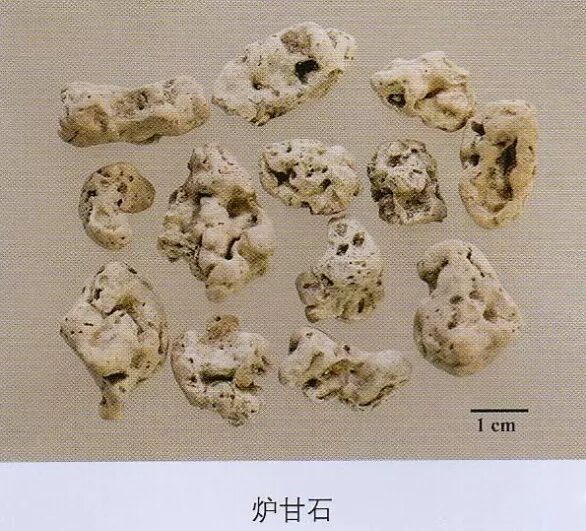 煅炉甘石:白色、淡黄色或粉红色的粉末,质松软而细腻光滑