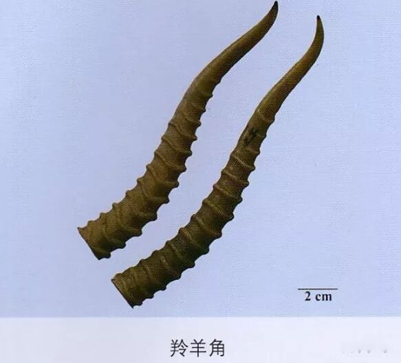 羚羊角:上半段中央有一条隐约可辨的细孔道直通角尖,习称通天眼。