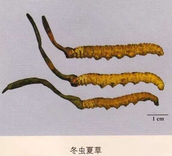 僵蚕:略呈圆柱形,多弯曲皱缩,白色粉霜状的气生菌丝和分生孢子。断面中间有亮棕色。