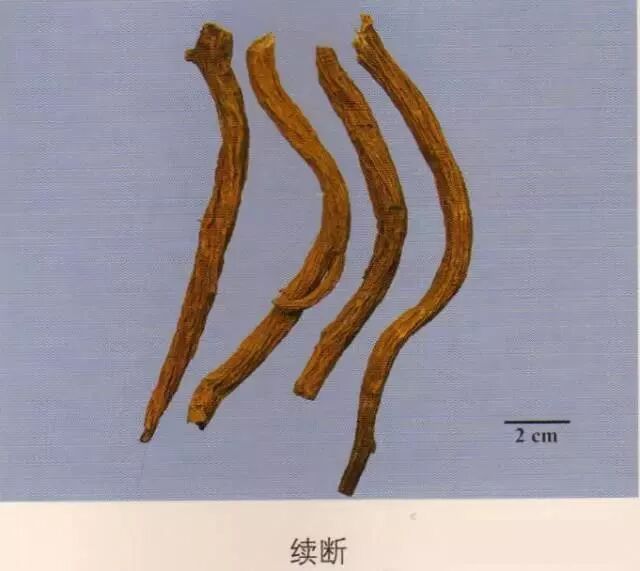 特征:有多数皮孔样横向突起,习称疙瘩丁,断面白色或灰白色,显粉性,皮部散有多数棕色油点,形成层环棕色。