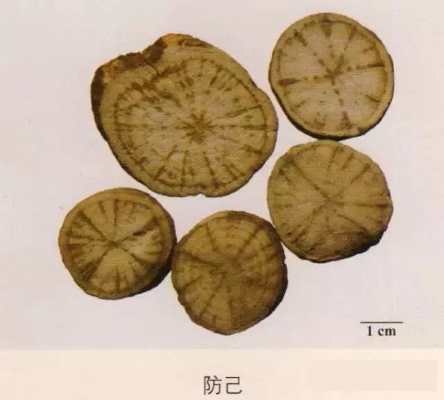 特征:根头部有明显密集的环纹,习成蚯蚓头,断面菊花心。
