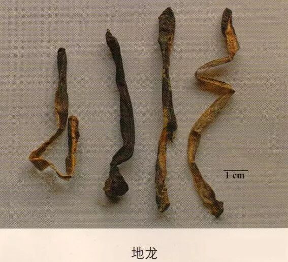 地龙:呈长条状薄片,第14~16环节为生殖带,习称白颈