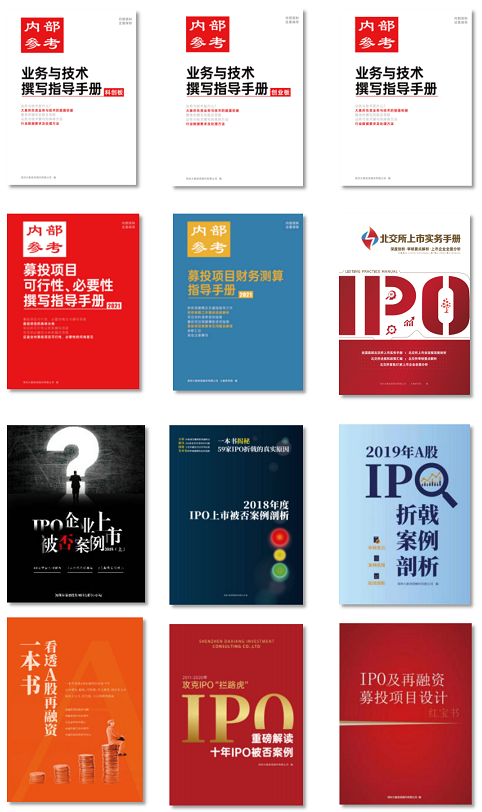 公司主要为拟上市公司及上市公司提供专业的IPO咨询服务、再融资咨询服务及并购咨询服务。具体内容包括A股IPO细分市场研究、IPO募投项目可行性研究、再融资募投项目可行性研究、并购标的可行性研究。基于自身强大的市场研究能力,我们同时也为拟赴香港及美国上市企业提供独立的第三方行业研究与分析服务。