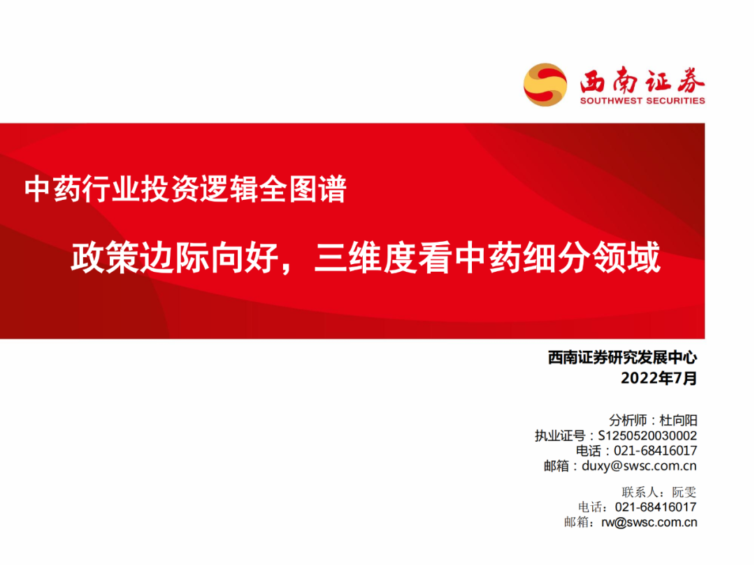 下载报告:中药行业投资逻辑全图谱:政策边际向好,三维度看中药细分领域