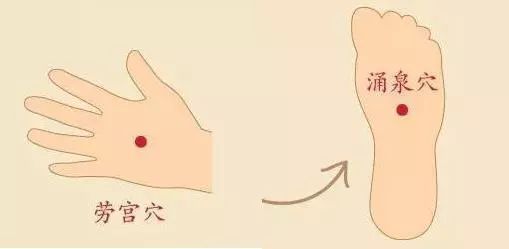 穴位调整的第二个办法:劳宫穴与涌泉穴。