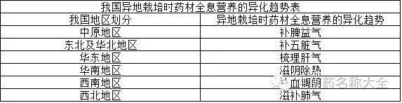 道地中药材就是指原产地或近似原产地生产的中草药材,它是生物进化的结果,是天地自然最佳组合因素的产物,药效最佳,具有完美的中药材全息营养。因此,在中药材在栽培中必须注意中药材全息营养,否则,生产出的中药材就不具有很好的医疗效果。在中药材原产地生产的中药材是道地中药材,然而市场需求量的增加和环境及物种保护法规条例的限制,中药材的生产不得不在原产地以外的地区进行人工栽培。通过人为原产地引种到其它地区方法将药材移出的栽培称之为药材异地栽培。由于药材异地栽培脱离了药材原有的生存环境,在新的地区再也没有了原来的物质营养条件和非物质的多种场能影响,比如地磁场、月潮、日磁场和宇宙场等多维场能的作用,所以,药材异地栽首先需要适应引进地区的生存环境条件,这样药材才能生长下来。如此,异地栽培的药材一边继承了该药材原有的特性,一边吸收了引进地区生存环境作用的新特点,培育了该药材新的全息营养特征,与道地滋补药材的全息营养形成了明显的异化。比如,滋补药材的道地产品在中原地区生产,它主要具有补益五脏之气功能;如果把滋补药材引种到华南地区,滋补药材的补益减弱,同时滋阴功能得以显现;如果把滋补药材引种到华东地区,就具备得补而不腻的特点,因为这里的滋补药材带有了调达肝气的效果。我国的各种生物无不打上地域的烙印。道地滋补药材和异地栽培药材其特点也十分明显。一般来讲,异地栽培药材在道地滋补药材的全息营养特征上,向异地即引种地域的自然全息营养特征上靠近,也就说有异化向引种地域特征的趋势。