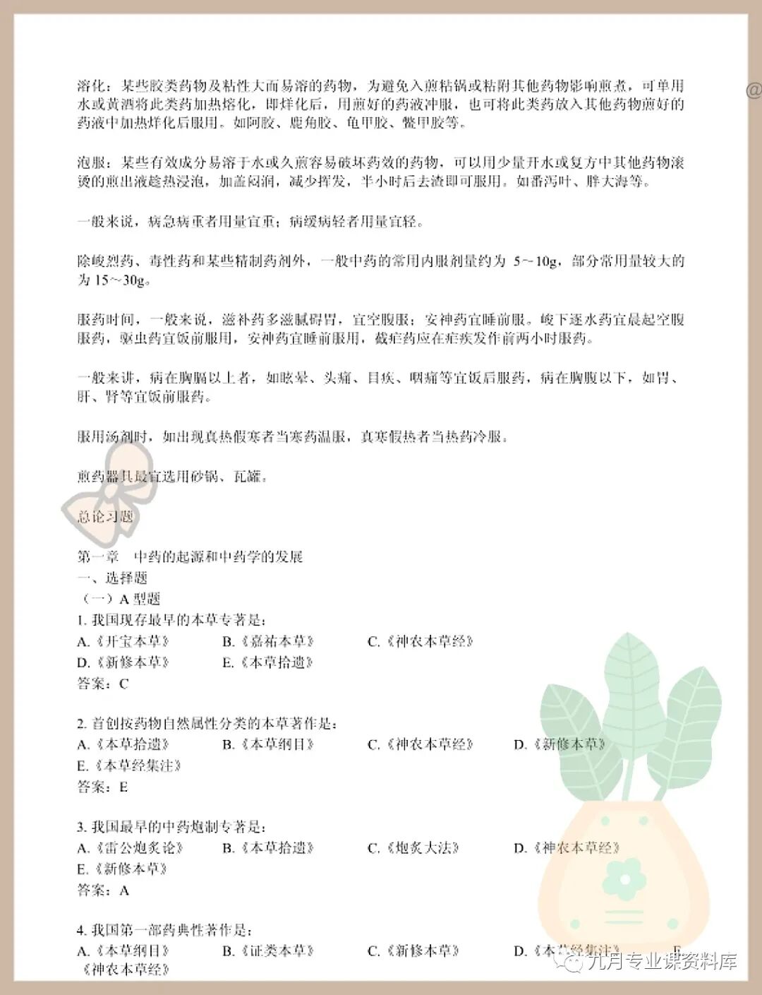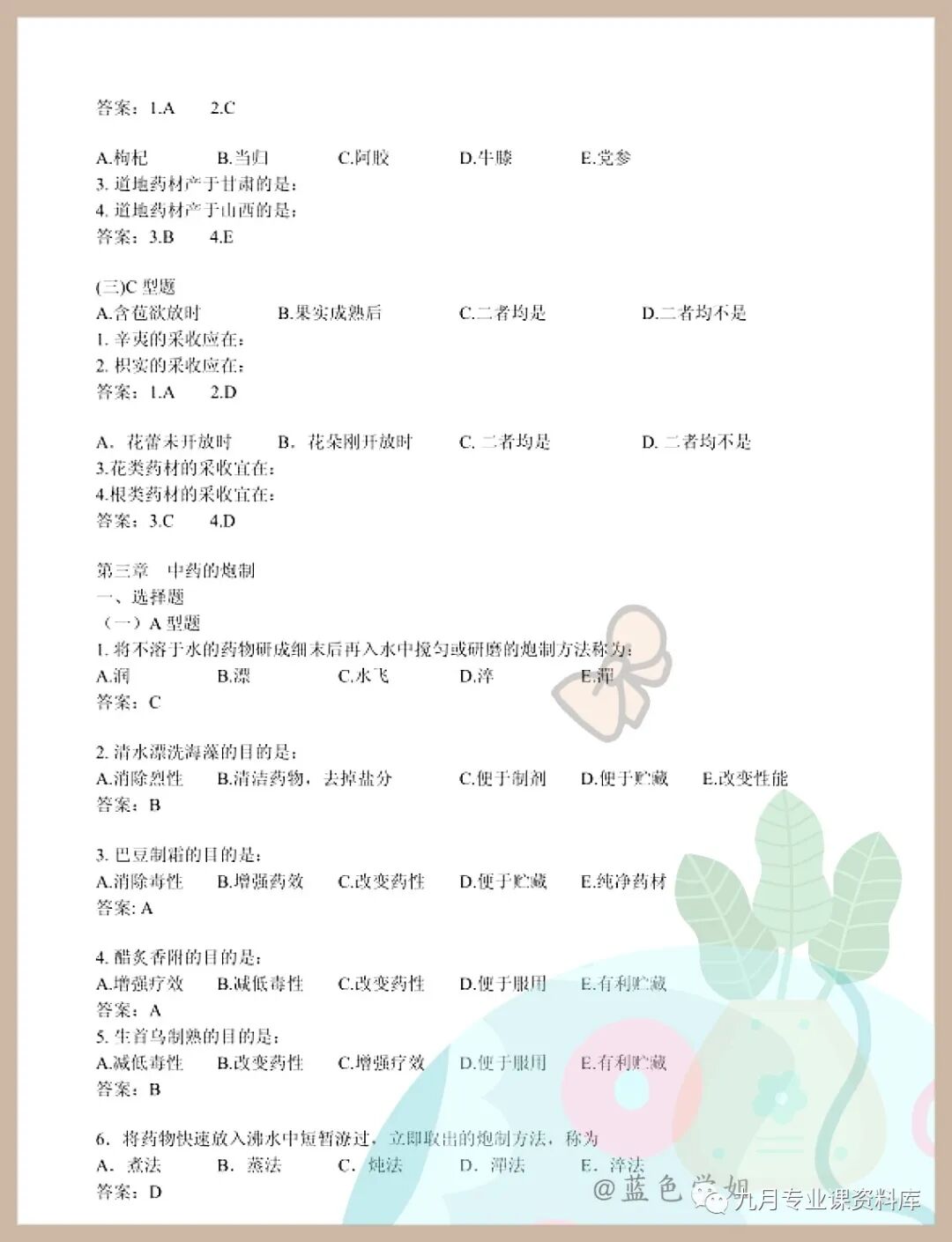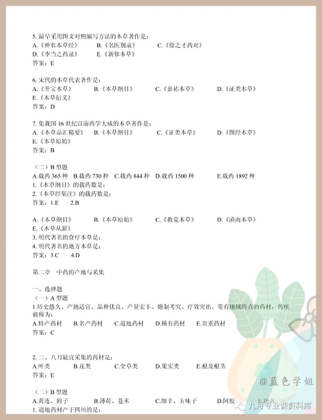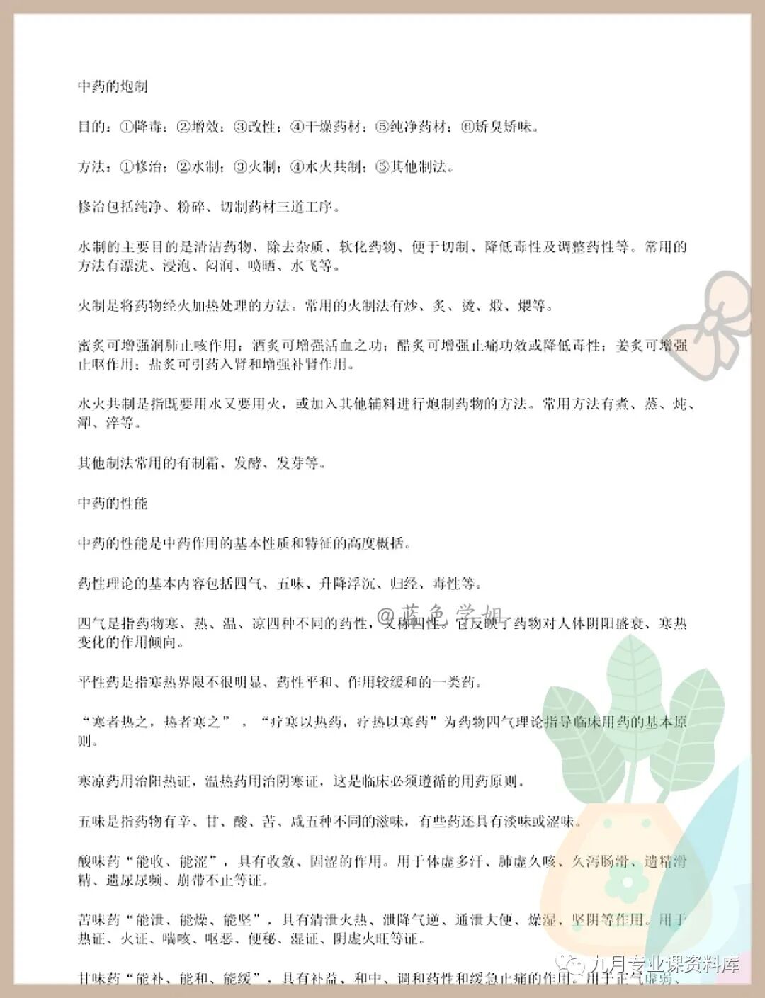 以上就是《中药学》 考试题目题库及答案+重点知识梳理总结+名词解释+中药学重点笔记的内容!